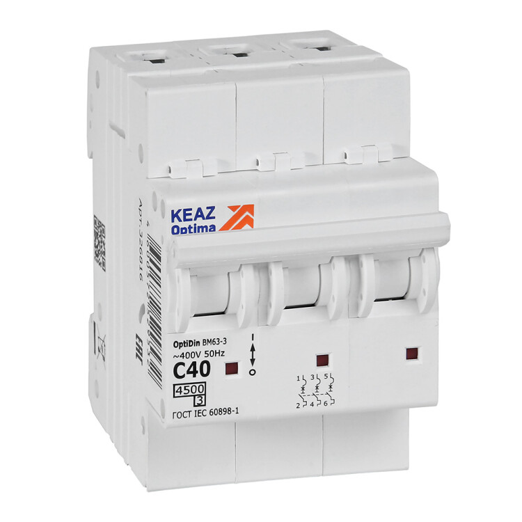КЭАЗ OptiDin BM63 Автоматический выключатель 3P 40А C 4,5кА AC (BM63-3C40-4,5-УХЛ3).
