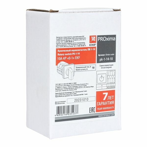 EKF PROxima Переключатель кулачковый ПК-1-14 10А 4P "0-1".