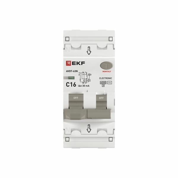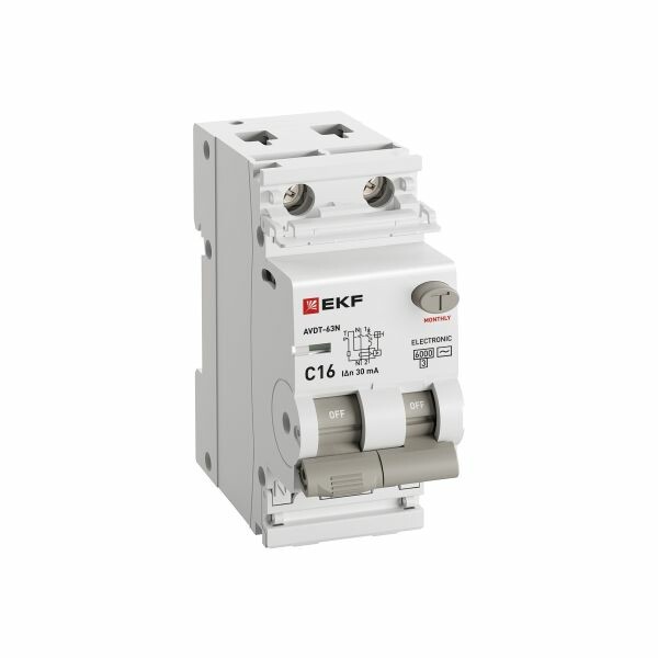EKF PROxima Автоматический выключатель дифференциального тока АВДТ-63N 1P+N 16А 30мА характеристика C тип AC электронный 6кА.