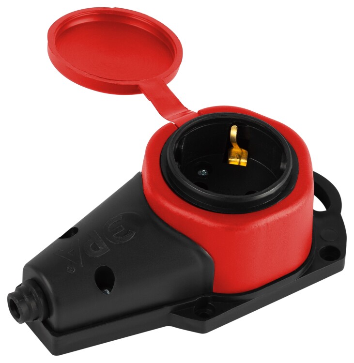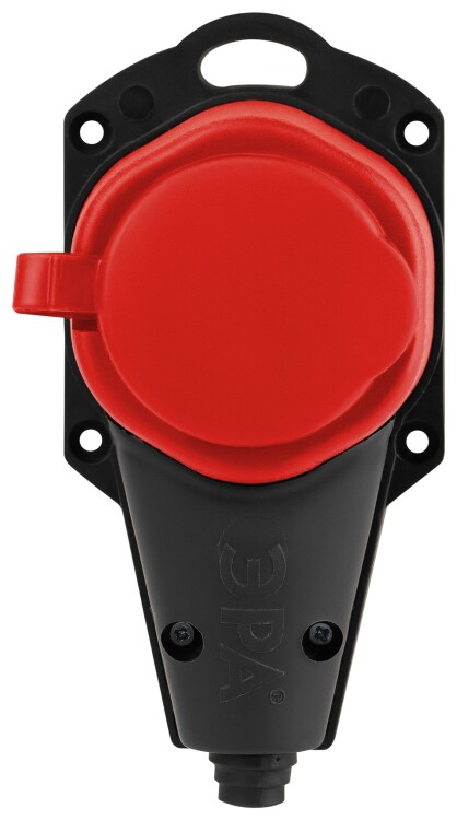 Каучуковая колодка ЭРА KX-1e-RED-IP44 1 гнездо, с заземлением, красная, для подключения кабеля (без разбора корпуса). Съёмная крышка. IP44-защита от пыли и влаги. Максимальная мощность 16А/3500Вт. Для кабеля сечением до 3x2,5мм2.