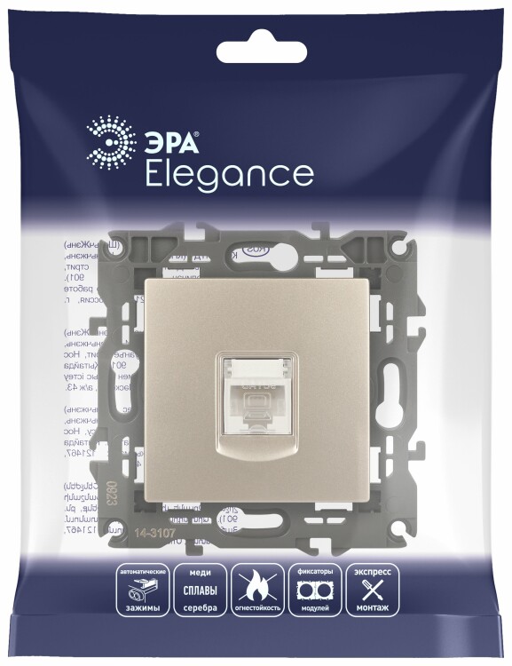 ЭРА Розетка Elegance 14-3107-04 информационная RJ45 IP20 шампань
