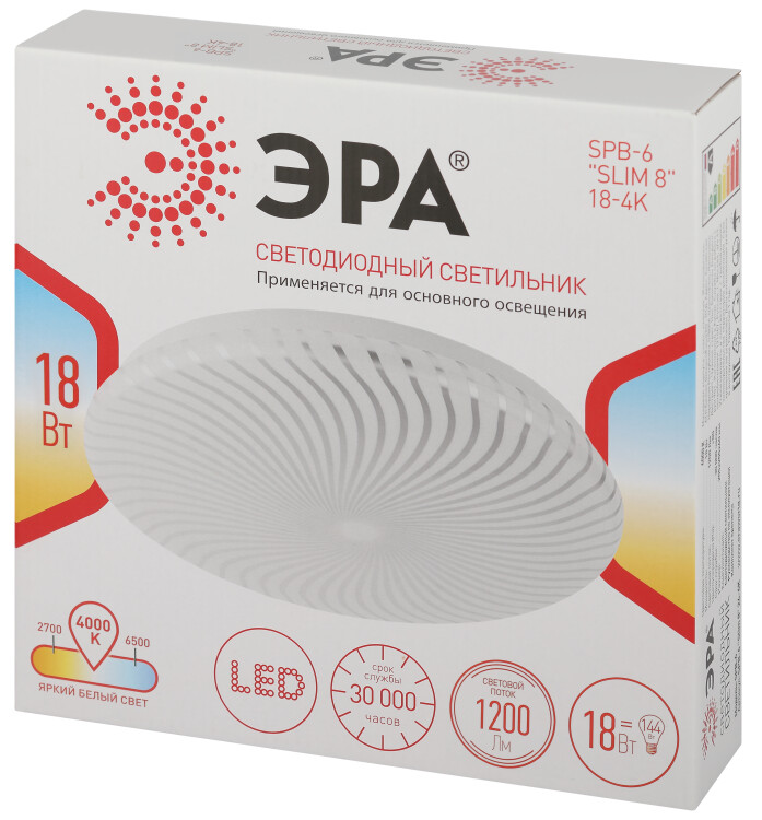 ЭРА Светильник потолочный светодиодный Классик без ДУ SPB-6 Slim 8 18-4K 18Вт 4000K