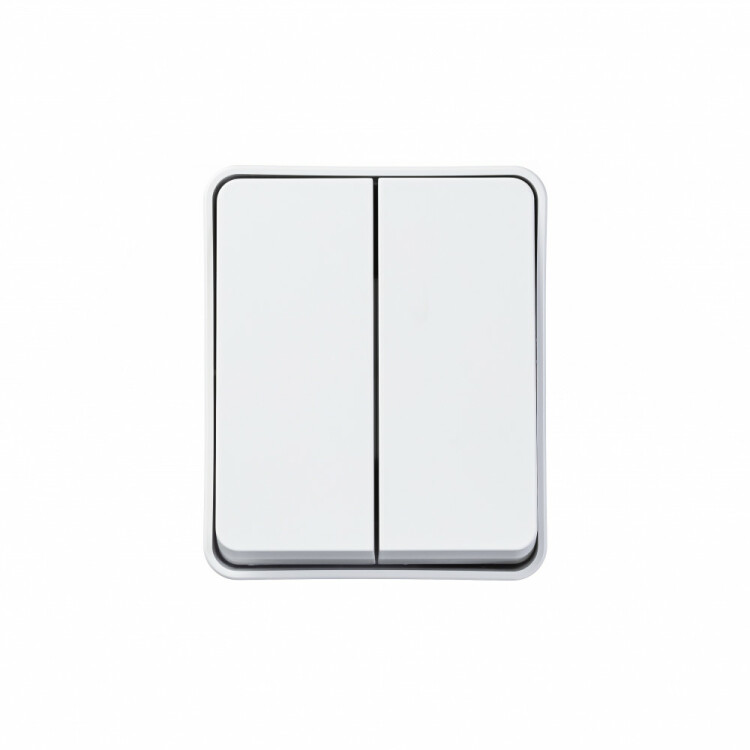 Выключатель 2-клавишный для открытого монтажа.