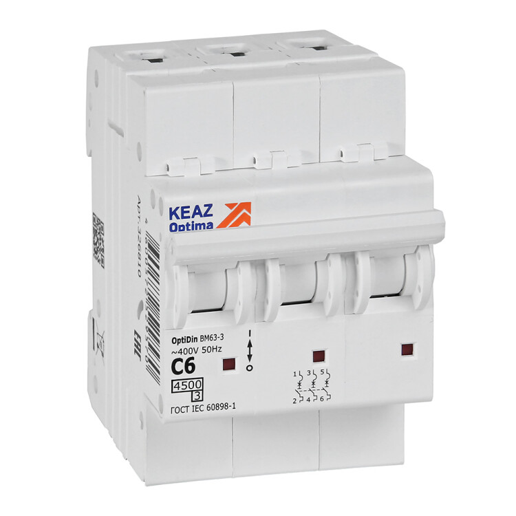 КЭАЗ OptiDin BM63 Автоматический выключатель 3P 6А C 4,5кА AC (BM63-3C6-4,5-УХЛ3).