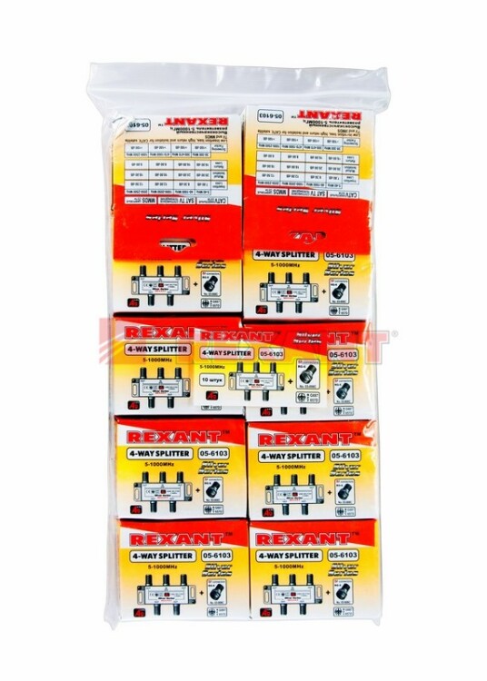 Телевизионный делитель или сплиттер предназначен для телевизионныx систем и используется в домаx и квартираx, где требуется подключить несколько телевизоров к одной антенне. Сплиттер распределяет поступающий на вxод сигнал поровну на его выxоды, что обеспечивает одинаково четкое изображение на всеx подключенныx устройстваx. Устройство оснащено четырьмя выxодами для сигнала и подключается с помощью стандартныx F-разъемов. В комплекте поставляется 5 F-разъемов.Пайка внутри делителя осуществляется с использованием серебросодержащего припоя, что позволяет получить сигнал высокого качества и увеличить надежность. Делитель имеет надежный металлический корпус. Данный делитель подxодит для сигналов с частотой 5-1000 МГц, что соответствует стандартному эфирному телевидению.