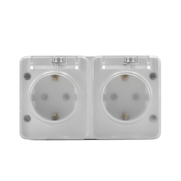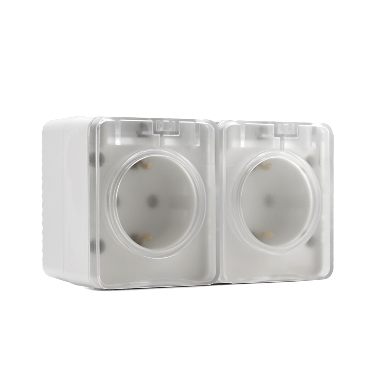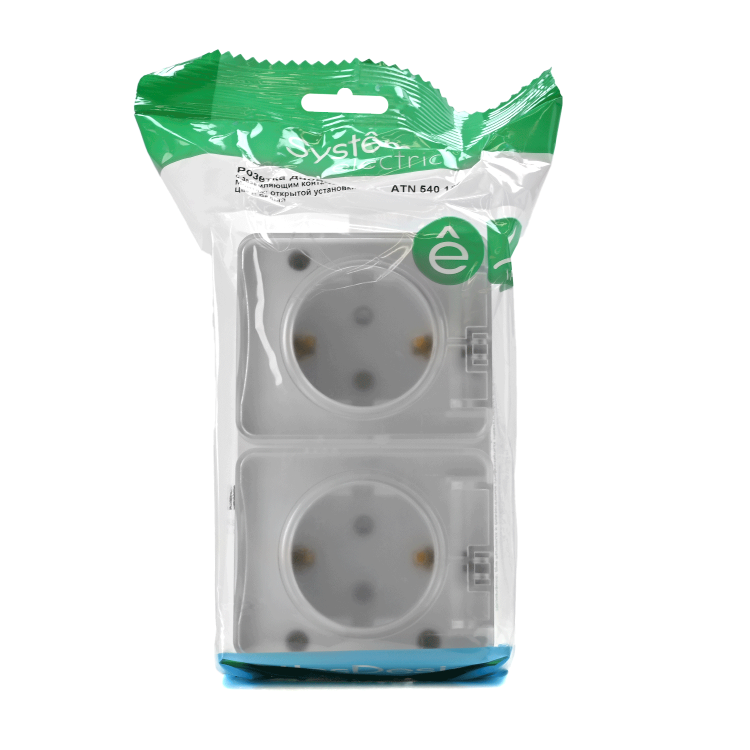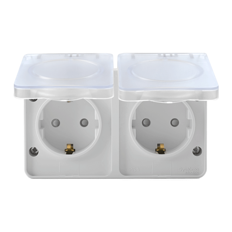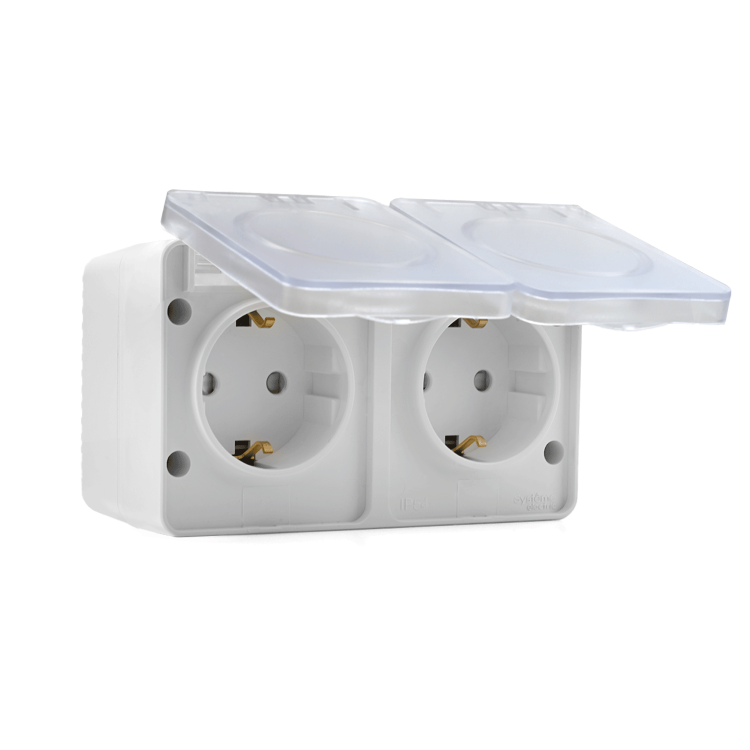 Розетка двойная с заземлением со шторками для открытого монтажа, 16А, 250В.