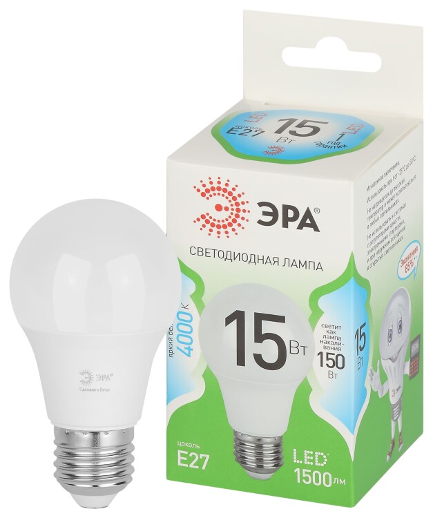 Светодиодная лампа ЭРА LED A60-15W-840-E27 GL серии Green Line — эффективное решение для основного освещения. Лампочка Е27 мощностью 15 Вт излучает нейтральный белый свет (4000K) без мерцания. Классическая колба A60 (груша) и стандартный цоколь E27 делают её совместимой с люстрами, бра, настольными и напольными светильниками. Высота лампы: 108 мм. Светодиоды потребляют меньше электроэнергии и служат значительно дольше традиционных ламп накаливания: до 30 000 часов. Работает от сети 220 В, эквивалентна 80 Вт лампе накаливания. Светодиодные лампы ЭРА подходят для жилых и коммерческих помещений и обеспечивают стабильное освещение.