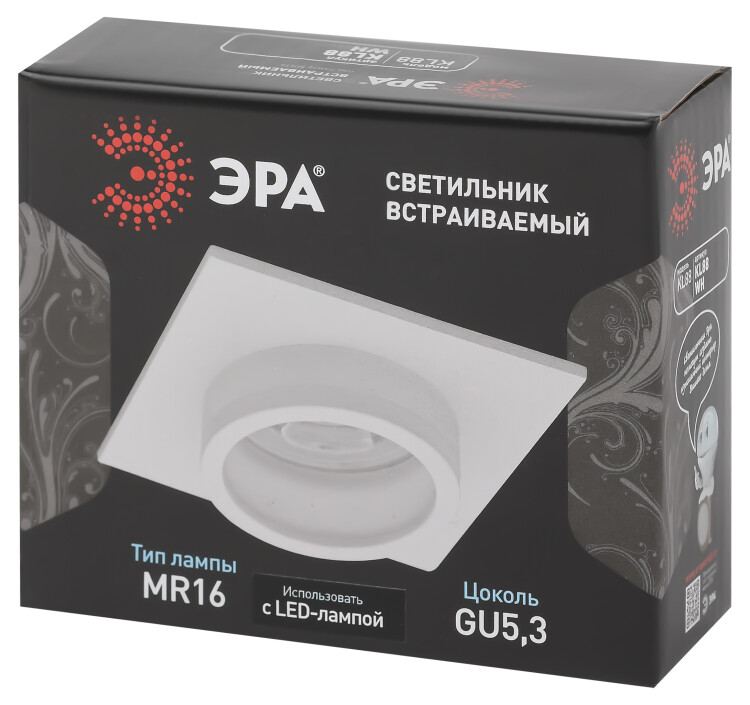Светильник встраиваемый KL88 WH MR16/GU5.3 - превосходный выбор для вашего дома. Точечные светильники можно использовать как в качестве главного освещения, так и для создания акцентов в определенных зонах комнаты. Благодаря скрытой части корпуса светильники можно встраивать не только в потолок, но и в стены, создавая разный стиль помещений. Светильник ЭРА с приятным дизайном подойдет для комнат с разным интерьером: от лофта до модерна, классицизма или минимализма. При помощи точечных светильников можно освещать только те участки помещения, которыми вы пользуетесь в данный момент, не затрачивая лишнюю элеткроэнергию. Максимальная мощность лампы составляет 12 Вт. Корпус встраиваемого светильника изготовлен из алюминия, что делает его особенно удобным и надежным в использовании. Диаметр отверстия, требуемого для установки светильника составляет 70 миллиметров, а размер корпуса светильника – 80x80 миллиметров. Цоколь под лампу GU5.3 входит в комплект. Купив точечный светильник бренда ЭРА, вы останетесь довольны и сможете создать приятную атмосферу и уют в Вашем доме. Внимание: лампа не входит в комплектацию.