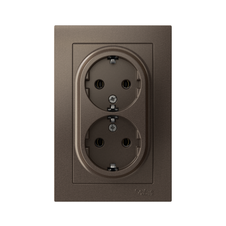 Розетка двойная в сборе Systeme Electric (ранее Schneider Electric) серии AtlasDesign в цвете мокко с заземлением, без шторок подходит для сетей 250 В, на ток 16 А. Заземляющий контакт обеспечивает дополнительную защиту от удара электрическим током. Лицевые детали из качественного ABS-пластика, устойчивого к царапинам и УФ-излучению. Двойная розетка позволяет подключить два устройства в одном месте. Изделие поставляется в комплекте с рамкой того же цвета.