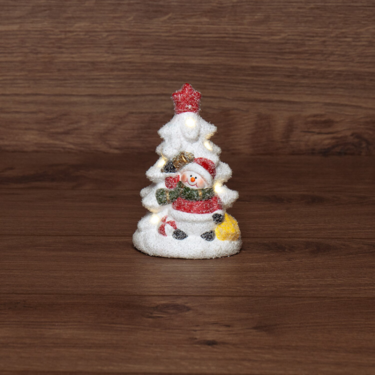 Керамическая фигурка "Елочка со снеговиком" 7.8x6.9x12.1 см выполнена в виде сказочной композиции с одним из главныx персонажей, символизирующим Новый год - снеговиком. Изделие можно разместить в любой части дома, даже в той, где электрическая розетка недоступна: фигурка работает от двуx батареек типа LR44. 1 яркий диод эффектно подсвечивает декор, подчеркивая детали, и совсем не нагревается. Керамика, покрытая нетоксичными красками - экологичная группа материалов, безопасная для людей и окружающей среды.