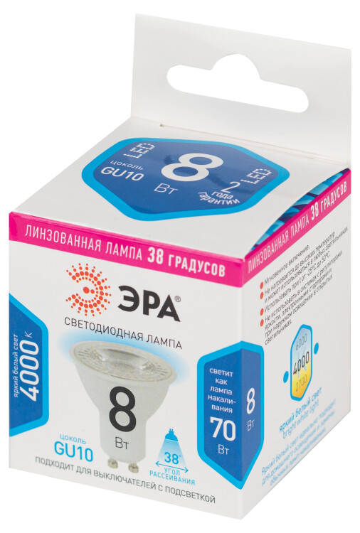 Линзованная лампа MR16 Lense с направленным световым пучком 38° для акцентной подсветки и трекового освещения. Светит ярким белым светом, который максимально приближен к естественному дневному. Цоколь GU10 подходит для использования с трековыми светильниками. Мгновенно включается и не нагревается.