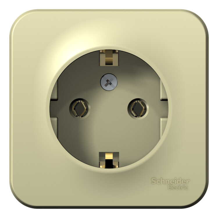 Розетка Systeme Electric (ранее Schneider Electric) BLANCA (открытой установки, цвет бежевый) одноместная с заземлением без шторок, с изолирующей пластиной подходит для сетей 250 В, на ток 16 А. Заземляющий контакт обеспечивает дополнительную защиту от удара электрическим током. При наличии заземления электрический потенциал уходит в землю, защищая человека. Корпус изделия выполнен из ABS-пластика.