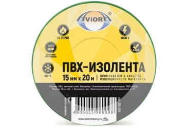Изолента ПВХ 15х20м Желтая-зеленая AVIORA