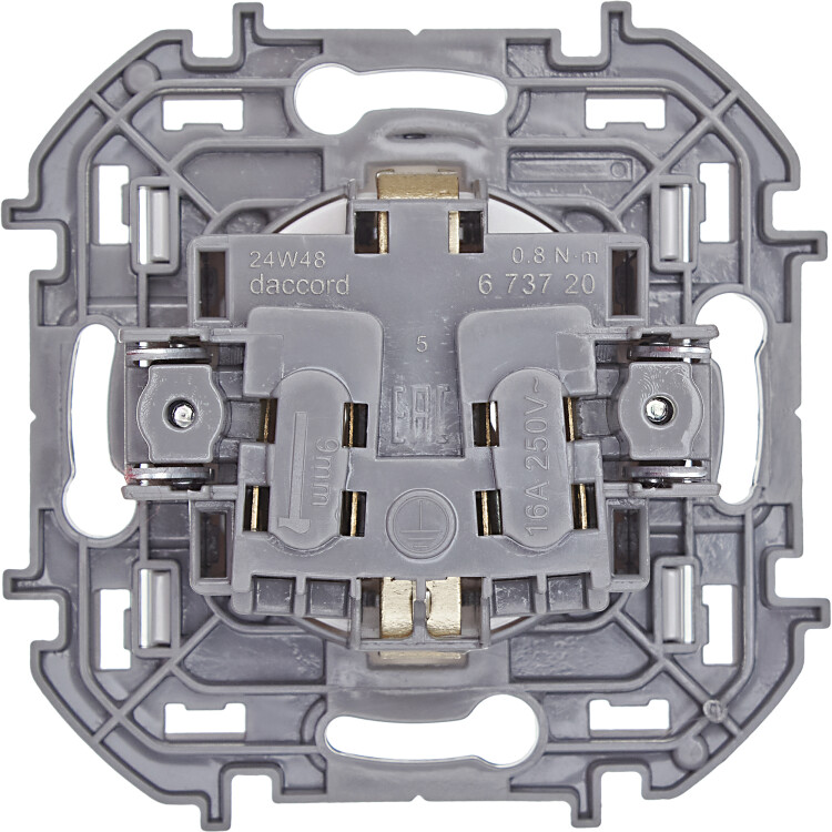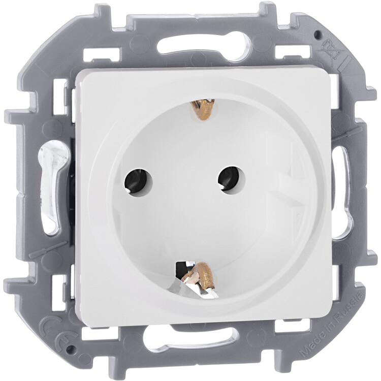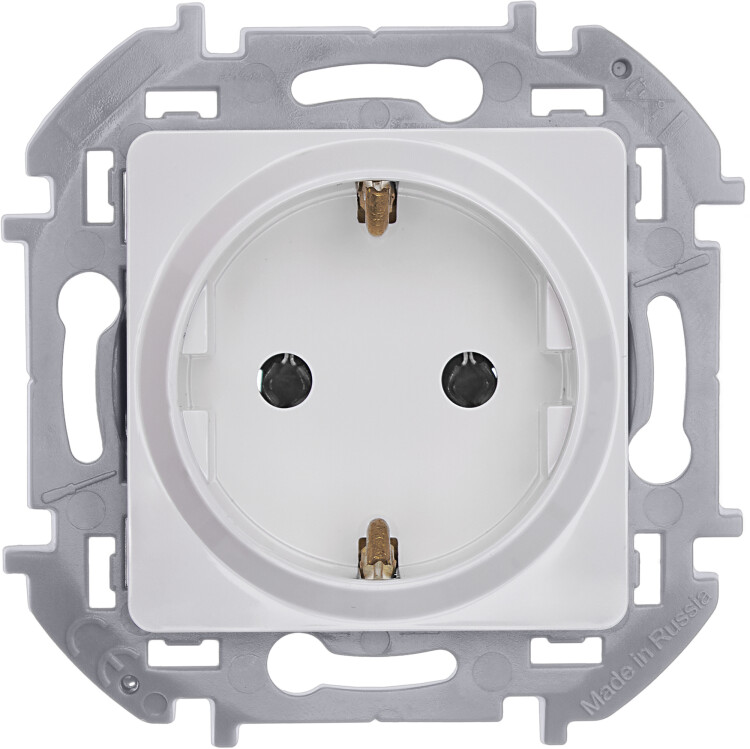 Розетка с заземлением для скрытого монтажа Legrand/Daccord Inspiria, цвет "Белый", максимальный ток 16А, напряжение ~250В, максимальная мощность 3680Вт, винтовые зажимы. Применяется для присоединения однофазных электрических потребителей к сети переменного тока в зданиях с проводкой с заземлением (с защитным проводником). Особенности изделия: - Контактная группа изготовлена из высококачественной латуни CuZn37, имеет высокую степень упругости и сохраняет плотный контакт с вилкой, при длительной эксплуатации - Скоба заземления имеет особый профиль для большей прочности - Зажимы для присоединения проводников винтовые П-образной формы для исключения бокового выдавливания провода - В зажимах установлены качественные винты с никель-цинковым напылением для надежного резьбового соединения даже при чрезмерных моментах затяжки - Все токоведущие части розетки имеют защиту от случайного прикосновения - Лицевая панель крепится на защелках. Изготовлена из прочного поликарбоната, стойкого к механическим воздействиям, выгоранию и загрязнениям - Материал механизма и суппорта - высококачественный поликарбонат: обладает высокой электробезопасностью, термостабильностью и не поддерживает горение - Простое выравнивание изделий при установке в ряд, благодаря специальной форме суппорта