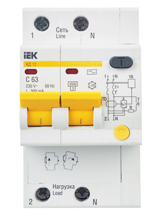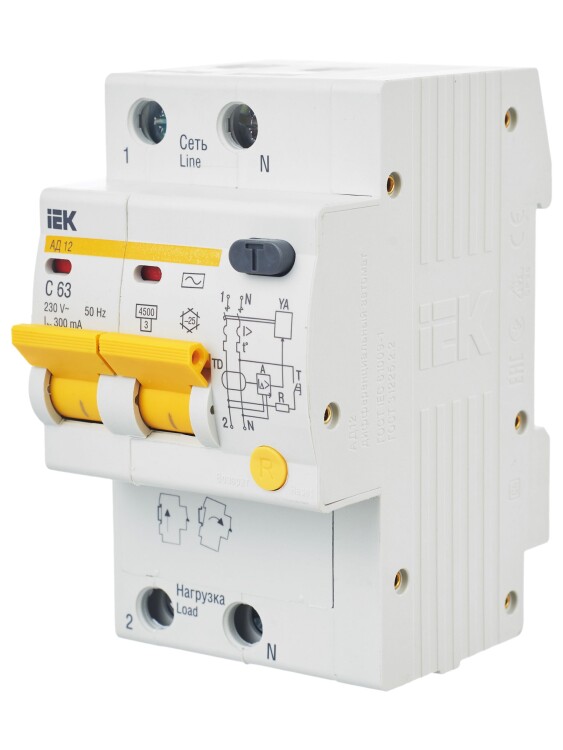 IEK KARAT Дифференциальный автоматический выключатель АД12 2Р 63А 300мА