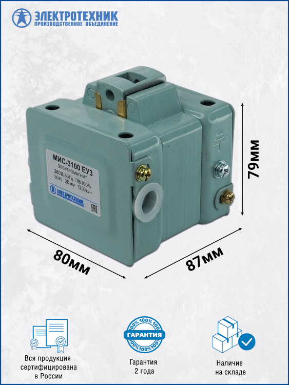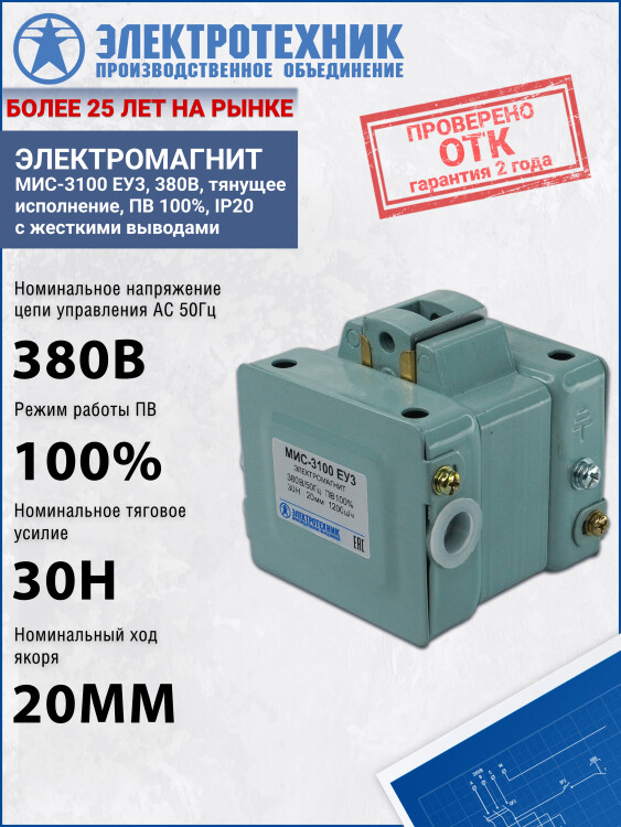 Электротехник МИС-3100 ЕУ3, 380В, тянущее исполнение, ПВ 100%, IP20, с жесткими выводами, электромагнит (ЭТ)