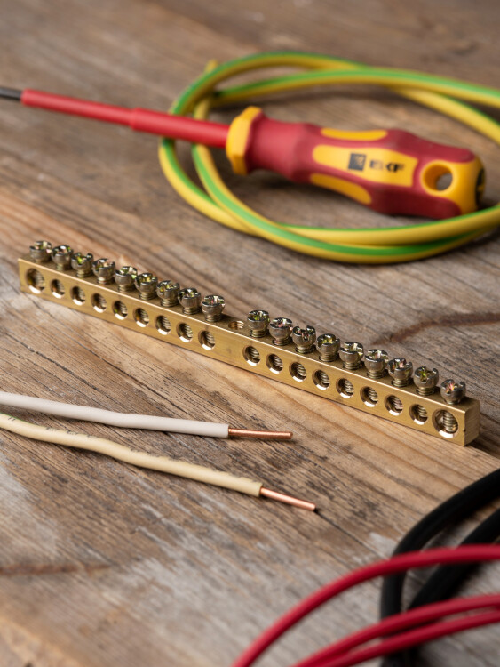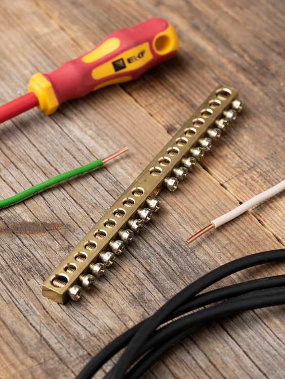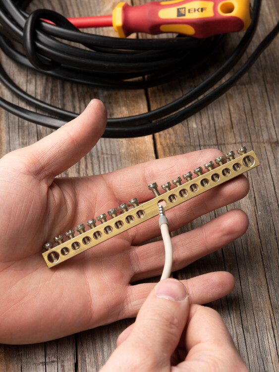 Шины предназначены для присоединения нулевых проводников (шина N) и заземления (шина PE). Шины выполнены из латуни и никелированной латуни. Нулевая шина устанавливается на изоляторе.