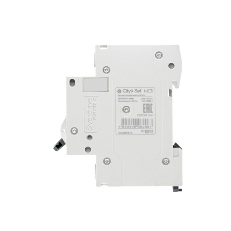 Автоматический выключатель серии City9 Set Systeme Electric, 1-полюсный, номинальный ток 50 А, характеристика С, Icn = 4.5 кА. Применяется в электрических сетях напряжением 230 В. Предназначен для защиты от перегрузок и токов короткого замыкания. Оснащен механизмом «мгновенной коммутации». Ударопрочный корпус из специального пластика с 6 металлическими заклепками. Безопасные клеммы исключают попадание кабелей в заклеммное пространство (ранее Schneider Electric Easy9 EZ9F34150).