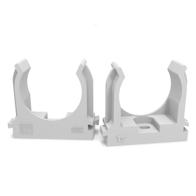 Промрукав Крепеж-клипса для труб для монтажного пистолета серая в п/э д32 (25шт/500шт уп/кор)