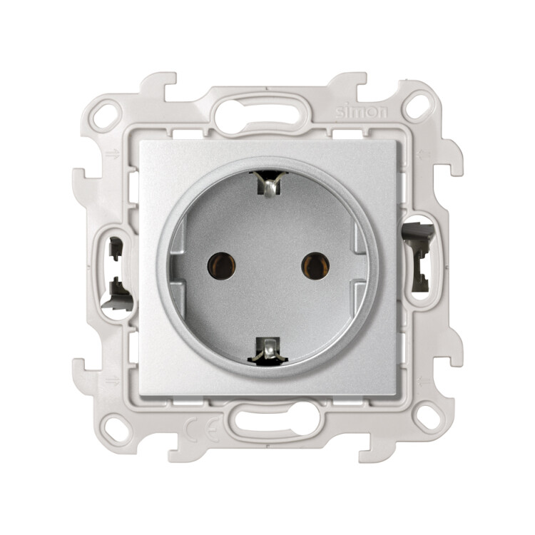 Simon 24 Алюминий Розетка с заземлением Schuko 2Р+Е 16A 250В~ с системой Push&Go