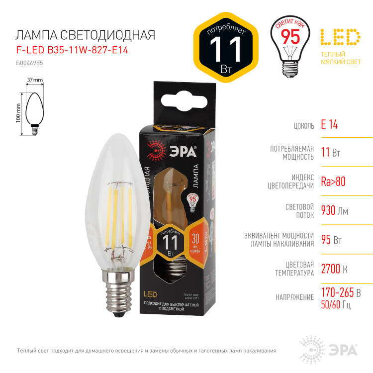 Светодиодная лампа серии F-LED. Лампа премиального сегмента. Максимально похожа на лампу накаливания, может использоваться в дизайнерских интерьерах. Угол рассеивания светового потока: 360 градусов. Совместима с выключателями с подсветкой.