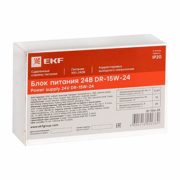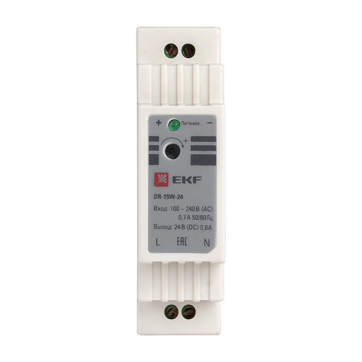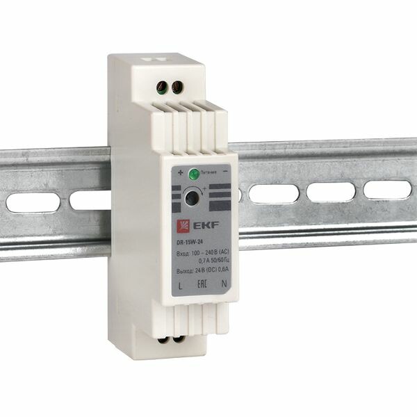 Блоки питания серии DR напряжениями 5/12/24/48 В, EKF устанавливаются на DIN рейку и предназначены для преобразования входного переменного напряжения 100-240 В в постоянное стабилизированное напряжение 5,12,24 или 48 Вольт.