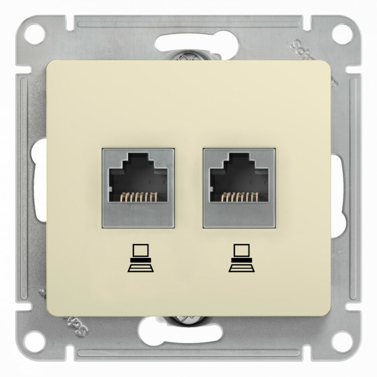 Механизм Systeme Electric (ранее Schneider Electric) серии Glossa (цвет бежевый) двойной розетки компьютерной с разъёмом RJ45 категория 5е предназначен для удобного и быстрого подключения вашего компьютера к компьютерной сети. Выполнен из материала PС+ASA, стойкого к УФ-излучению и появлению царапин. (ранее Schneider Electric ЭУИ UNICA MGU5.2020.25ZD)