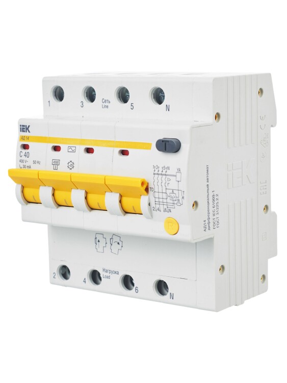 В изделиях предусмотрена индикация срабатывания от дифференциального тока, а для АД12М также светодиодная индикация включенного состояния. АД12М сохраняет работоспособность при снижении напряжения электрической сети до 110 В.