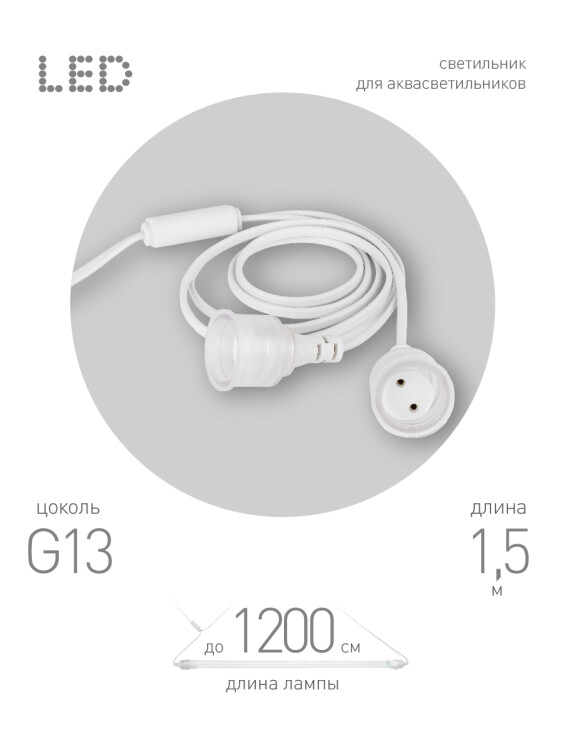 Патрон ЭРА FITO-Holder G13 для популярных в организации фитоосвещения ламп Т8 длиной до 1200 мм, с выключателем и вилкой. Позволит без дополнительных усилий подключить линейную фитолампу и разместить ее в любом удобном месте. Белый цвет удачно впишется в любой интерьер, а компактный размер сэкономит место. Подойдёт для установки аквариумной подсветки — защищён от влаги IP65. Успешно монтируется на крышку аквариума, не боится брызг воды, конденсата (без погружения в воду).