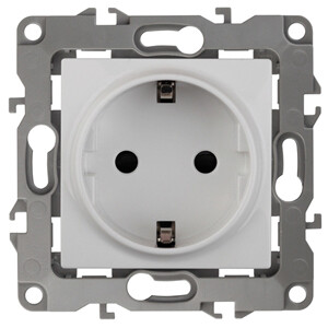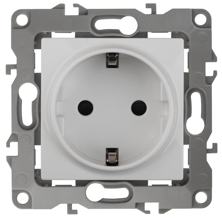 Розетка с заземлением серии Эра 12 скрытой установки механизм цвет белый 12-2101-01. Номинальные характеристики 16А 250В . Сделана из поликарбоната, оснащена автоматическими клеммами для быстрой и надёжной фиксации жил кабеля в механизме. Парные клеммы обеспечивают соединение шлейфом. Монтаж в подрозетник производится и на лапки, и на винты. Рамки приобретаются отдельно. Рамки Эра 12: 1 пост 12-5001-хх, 2 поста 12-5002-хх, 3 поста 12-5003-хх, 4 поста 12-5004-хх, 5 постов 12-5005-хх. Рамки Эра 12 Сатин: 1 пост 12-5101-хх, 2 поста 12-5102-хх, 3 поста 12-5103-хх, 4 поста 12-5104-хх, 5 постов - 12-5105-хх (хх - код цвета: 01-белый, 02-слоновая кость, 03-алюминий, 04-шампань, 05-антрацит, 06-чёрный, 07-ольха(белёный дуб-сатин), 08-вишня, 09-дуб, 10-венге, 11-сосна, 21-жёлтый, 22-оранжевый, 23-красный, 24-охра, 25-бордо, 26-лайм, 27-зелёный, 28-голубой, 29-синий).