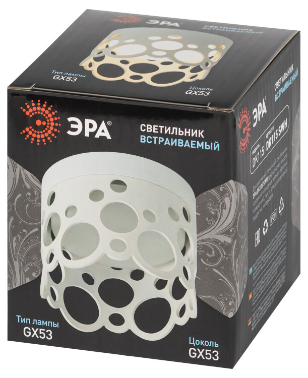 Точечные светильники DK115 SWH – прекрасное решение для самых разных помещений в Вашем доме или квартире. С помощью встраиваемых светильников можно подсвечивать от рабочего места до пространства для готовки на кухне. Светильник ЭРА с приятным дизайном подойдет для комнат с разным интерьером: от минимализма до хай-тека, прованса или скандинавского стиля. Степень защиты светильника - IP20, она дает возможность устанавливать его в разных помещениях, кроме тех, где повышена влажность. Корпус встраиваемого светильника изготовлен из алюминия, что делает его особенно удобным и надежным в использовании. Для данного светильника подойдет лампа с цоколем GX53 мощностью до 15 Вт. Купив светильник Эра, вы сможете создать в своем доме атмосферу уюта и комфорта. Внимание. Лампа не входит в комплект.