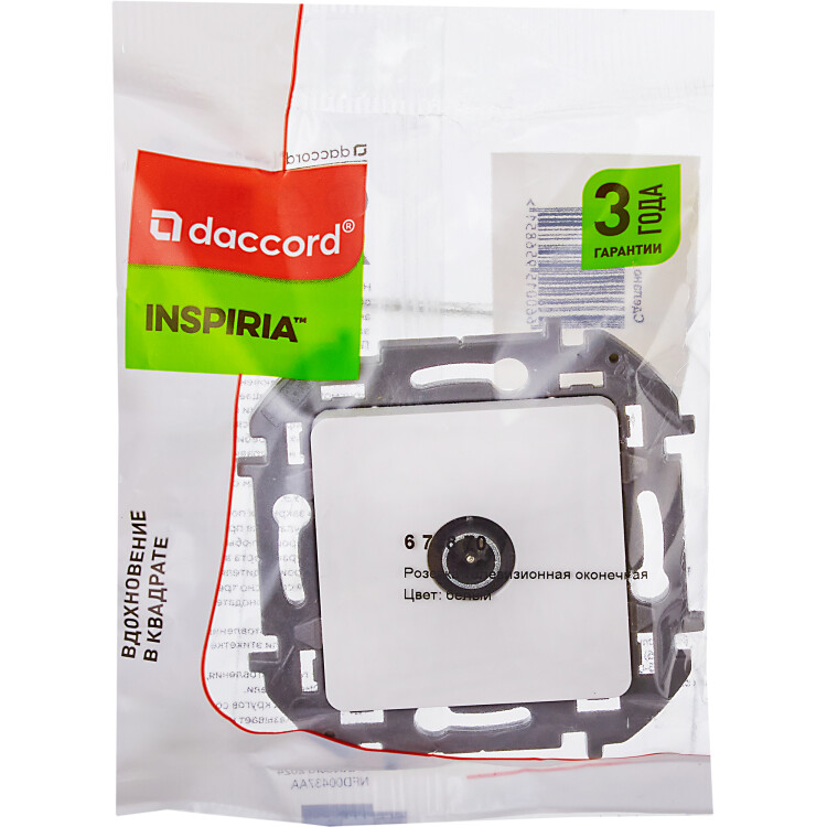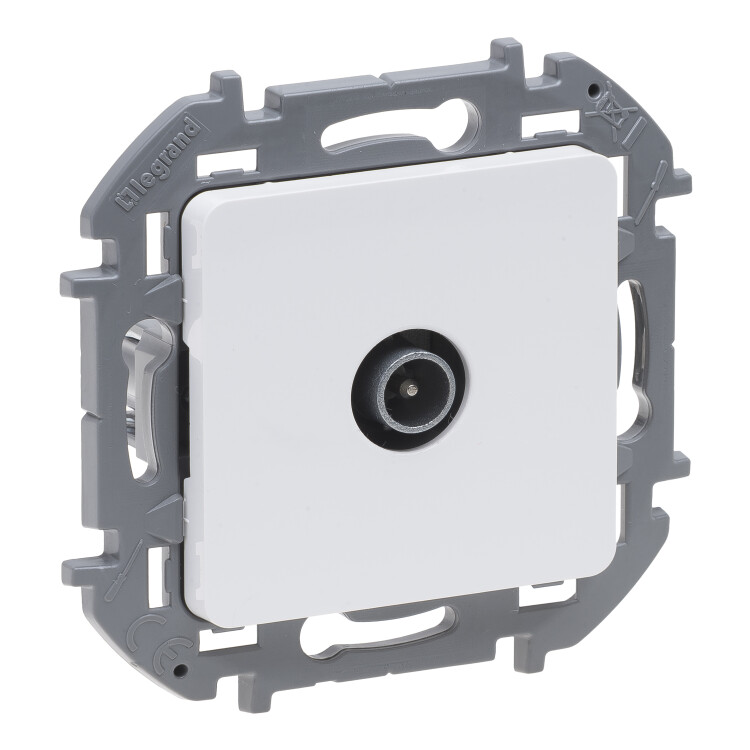 Розетка телевизионная для скрытого монтажа Legrand/Daccord Inspiria, оконечная для схемы "шлейф", затухание 10дБ, 4-862МГц, цвет "Белый".