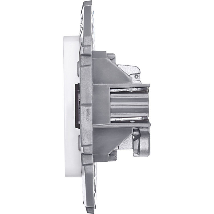 - Присоединение коаксиального кабеля к розетке осуществляется удобным безвинтовым коннектором