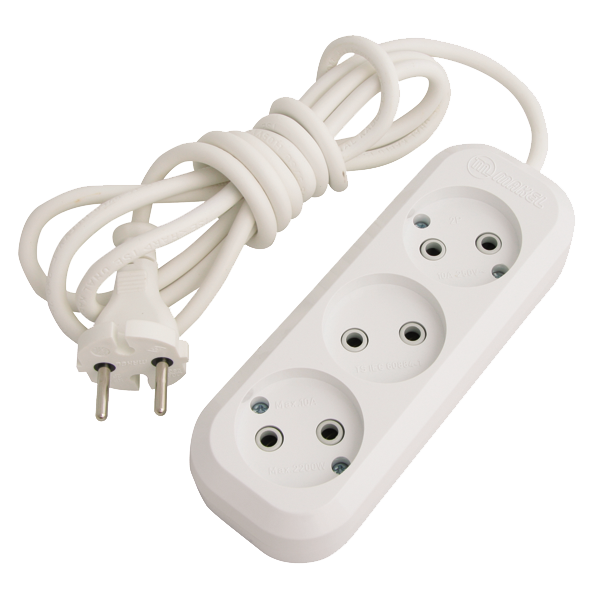 Удлинитель 3-мест. 5м 2P бел. 10А (ПВС 2х1,0) Makel