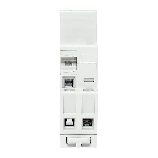 Модульные контакторы представляют из себя контактор в классическом корпусе модульного оборудования. Он состоит из неподвижных контактов, подвижных контактов, которые закреплены в подвижной части магнитной системы. Неподвижная часть магнитной системы закреплена жестко в корпусе КМ. Пружина препятствует смыканию контактов. При подаче напряжения на катушку управления в магнитной системе контактора возникает магнитное поле, которое, преодолевая сопротивление пружины, смыкает магнитную систему и замыкает контакты. При отключении напряжения с катушки управления пружина размыкает контакты. Возможна коммутация алюминиевым и медным проводом.