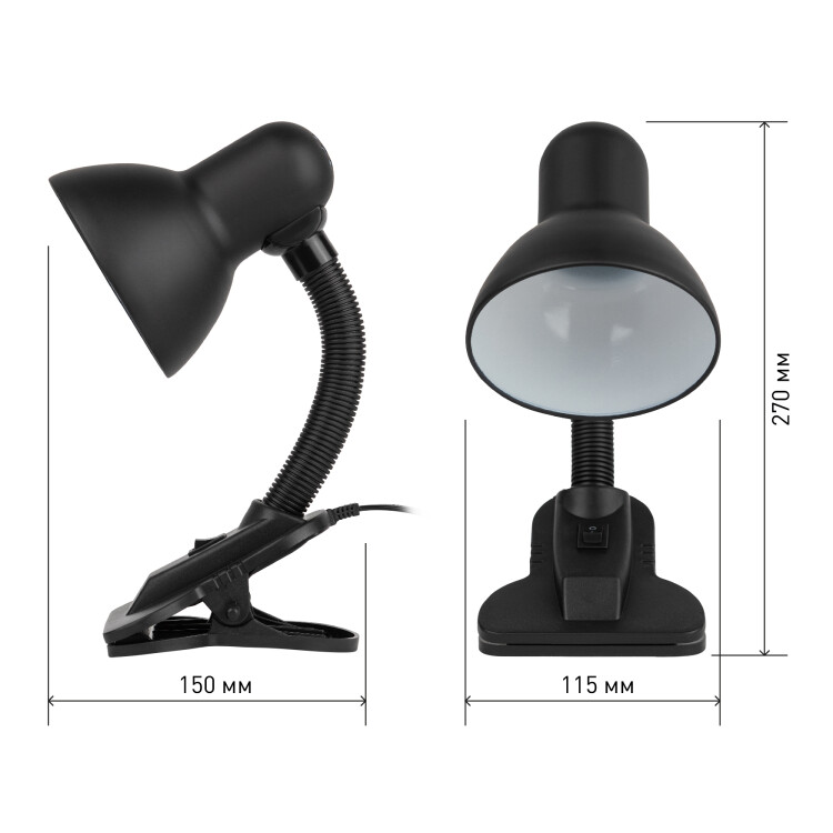 Настольный светильник-прищепка ЭРА N-212-E27-40W-BK может использоваться с лампой накаливания, компактной люминесцентной лампой (КЛЛ) или светодиодной (LED) лампой. У светильника прочная удобная прищепка и металлический плафон. Наклон и поворот плафона в любом направлении для удобного направления света. Поставляется в "мягкой упаковке" - индивидуальном ПЭ пакете.