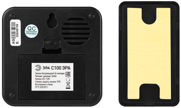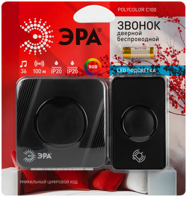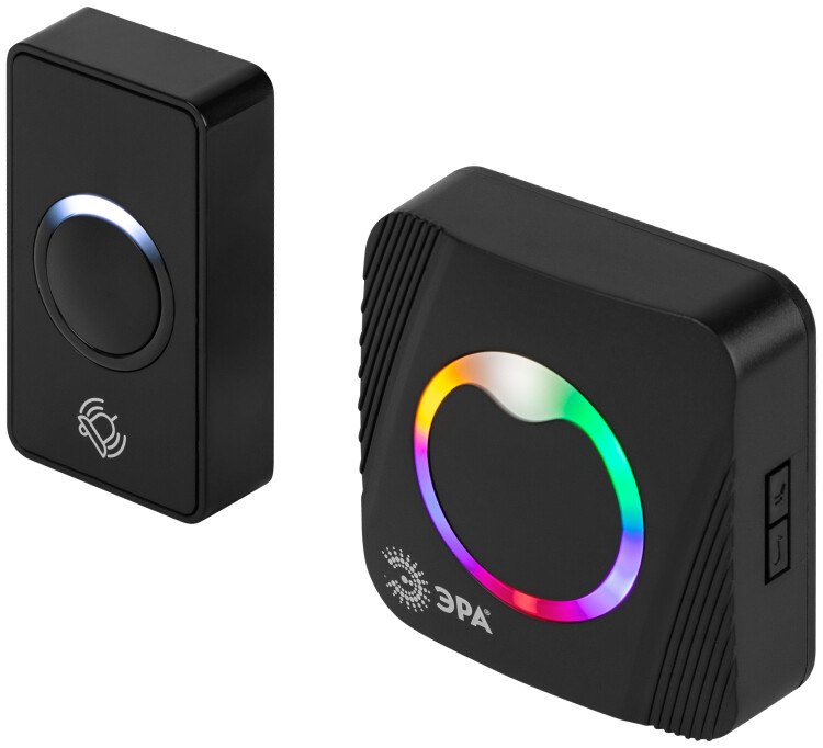 Звонок беспроводной 36 мелодий ЭРА POLYCOLOR C100 RGB подсветка чёрный