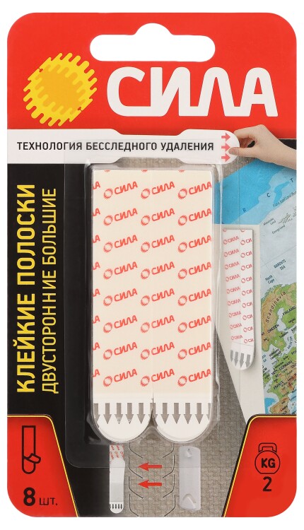 Максимальная нагрузка: 2 кг на 1 полоску или 16 кг на упаковку из 8 шт.