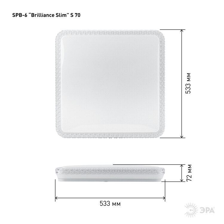 Изящный светильник SPB-6 "Brilliance" привнесет стиль и удобство в Ваш дом. Светодиодная люстра имеет средние параметры 533x72 мм. Это позволит ей гармонично декорировать какое угодно убранство. LED люстра оснащена светодиодом с приятным белым свечением. За счет грамотного светораспределения и непрозрачному пластику в составе плафона Ваши глаза не будут раздражаться. Важной особенностью является возможность управления пультом. Больше не нужно подбегать к выключателю. Вы можете регулировать диапазон цветовой температуры от 3000 до 6500 К. Необычная квадратная форма электросветильника, инкрустированная "бриллиантами", создает шикарный стиль. Люстра обогатит интерьер в спальне, коридоре, а также гостиной. Плавные переливы декора будут дарить праздничное настроение. Мощность в 70 Вт и срок службы до 50 000 часов подарят долгую эксплуатацию светодиодной люстры, создавая незабываемую романтичную атмосферу. Купите потолочный светильник ЭРА SPB-6 "Brilliance" и стилизуйте пространство.