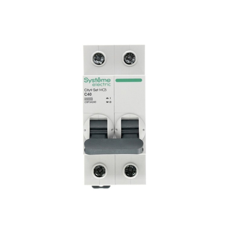 Автоматический выключатель серии City9 Set Systeme Electric, 2-полюсный, номинальный ток 40 А, характеристика С, Icn = 4.5 кА. Применяется в электрических сетях напряжением 230 В. Предназначен для защиты от перегрузок и токов короткого замыкания. Оснащен механизмом «мгновенной коммутации». Ударопрочный корпус из специального пластика с 6 металлическими заклепками. Безопасные клеммы исключают попадание кабелей в заклеммное пространство (ранее Schneider Electric Easy9 EZ9F34240).