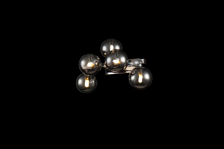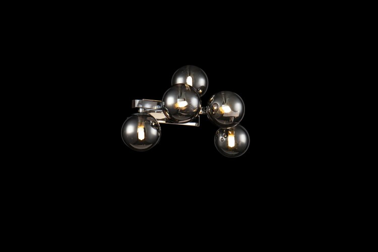 Масштабные скульптурные композиции, образованные многочисленными шарами из выдувного стекла, формируют неповторимый облик светильников серии. На полированных металлических ветвях установлены тонированные плафоны, которые мягко рассеивают и приглушают свет ламп. Модели серии представлены в трех цветах: золото, хром и латунь. Высота подвесных светильников регулируется длиной троса. Серия представлена потолочными, подвесными светильниками, и бра. Бра MOD547WL-05CH; Цвет-Хром; Высота-240; Высота при подвесном креплении--; Диаметр--; Ширина-230; Глубина-380; Цоколь-G9; Мощность-28W