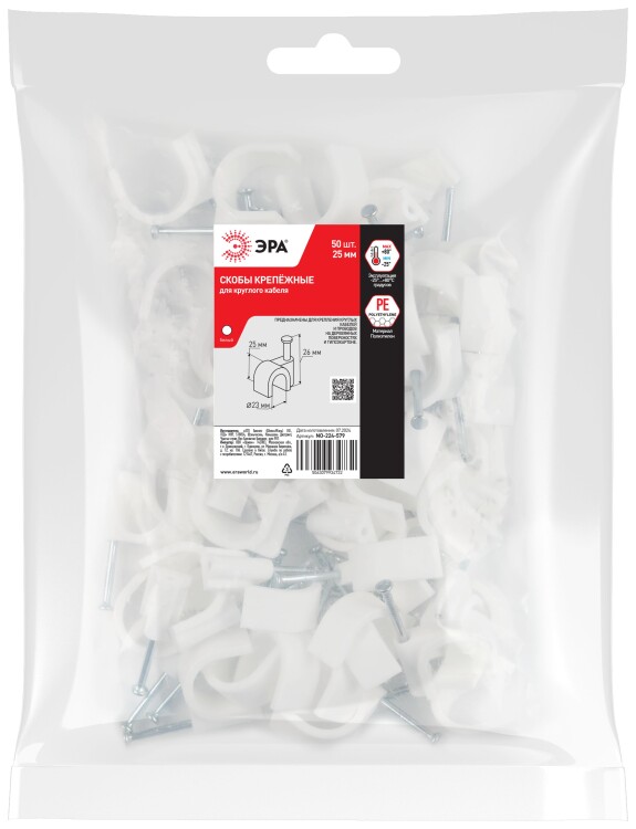 Скобы крепёжные пластиковые ЭРА предназначены для быстрого и надежного крепления круглых и плоских кабелей.