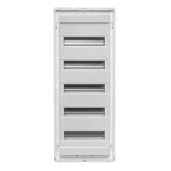 Корпуса пластиковые серии «Nova» предназначены для сборки силовых, слаботочных и комбинированных щитов. На DIN-рейки устанавливается модульное оборудование. На монтажные платы – антенные разветвители, Wi-Fi роутеры, патч-панели и иное слаботочное оборудование. Щиты устанавливаются как в бетонные и кирпичные стены, так и в гипсокартон, монтажные комплекты для установки в гипсокартон входят в комплектацию оснований щитов либо в комплектацию щитов в сборе. Двери щитов можно выбрать их разных материалов – пластик, металл или металл с перфорацией. Также доступны дополнительные аксессуары, необходимые для установки мультимедийного оборудования и существенно упрощающих монтаж щитов. Есть возможность приобрести как отдельно основание щита и дверь, так и основание с дверью в комплекте в одной коробке. Основные преимущества: съемные шасси с din-рейками, съемные кабельные фланцы, гребенка для фиксации входящих проводников, регулировка дверей по глубине, современный минималистичный дизайн