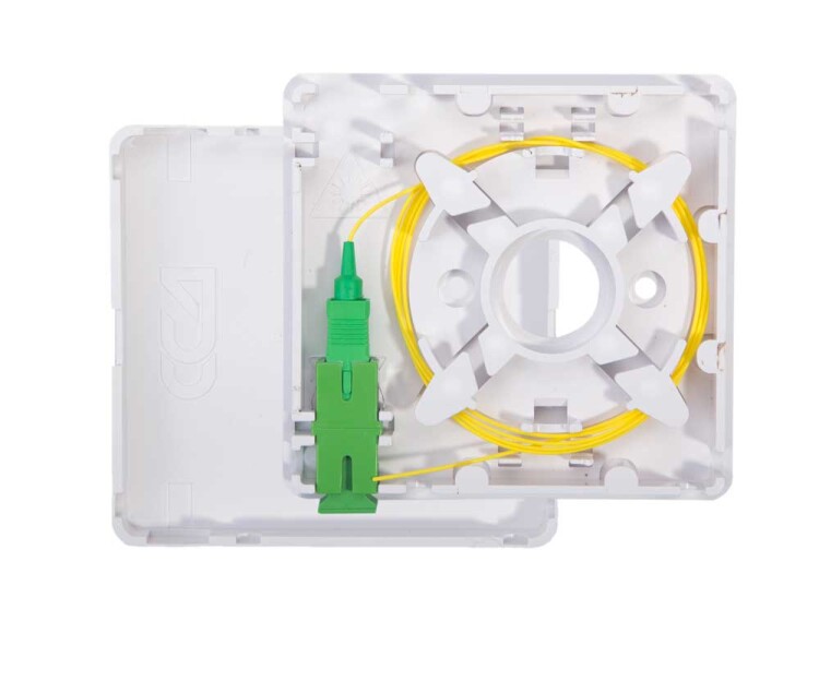 Оптический кабель разделывается и фиксируется на основании корпуса. Волокно сваривается с пигтейлом, КДЗС закрепляется в ложементе. Возможно использование механических соединителей типа Fibrlok. Адаптер устанавливается в одно из посадочных мест на основании корпуса.