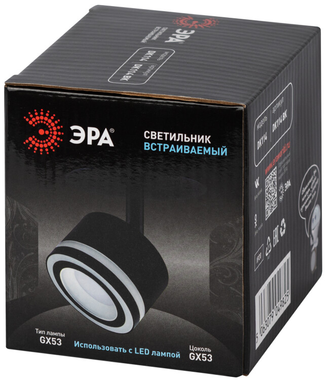 ЭРА Светильник встраиваемый DK114 BK под лампу GX53 поворотный черный