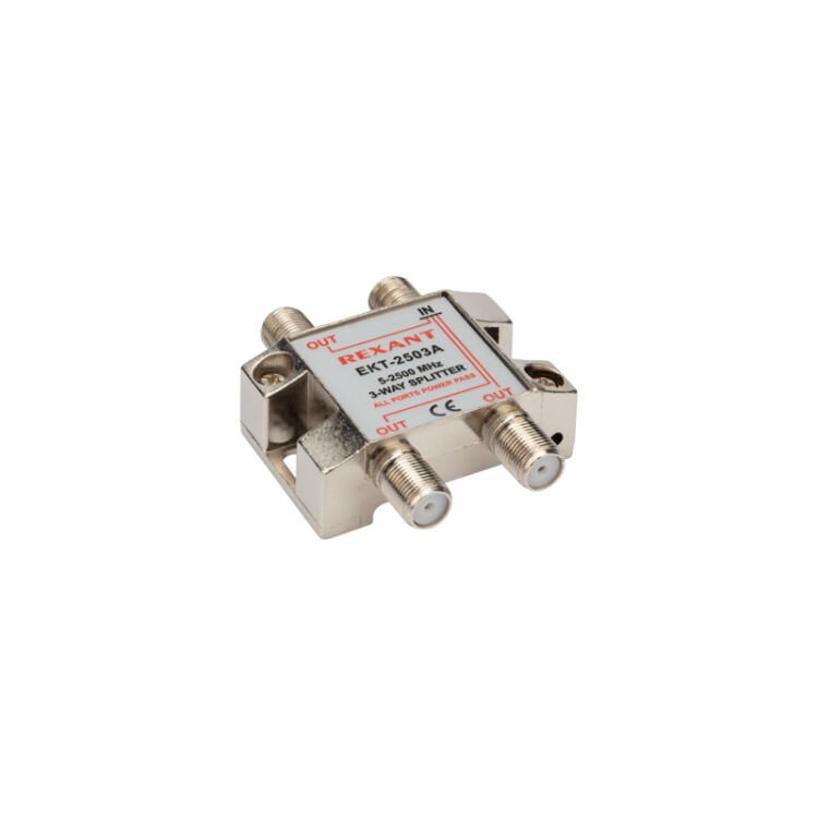 Делитель F-типа на 3 TV REXANT предназначен для разделения спутникового сигнала между несколькими устройствами. Применяется в случае, когда требуется подключить один телевизионный кабель, идущий от антенны, сразу к нескольким телевизорам. Сплиттер обеспечивает надежное соединение контактов, что способствует качественному распределению сигнала без потери мощности. Не требует подключения к внешним устройствам.Делитель оснащен тремя выxодами и подключается с помощью F-разъемов.Полоса пропускания делителя от 5 до 2500МГц, что соответствует стандартному эфирному и спутниковому телевидению.При монтаже сплиттера нет необxодимости паять контакты, что способствует удобному и быстрому подключению.