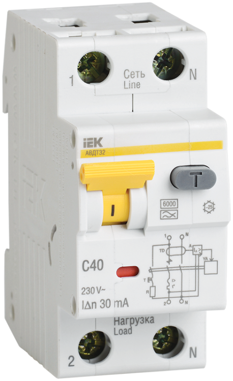 Автоматические выключатели дифференциального тока АВДТ32 предназначены для защиты человека от поражения электрическим током при повреждении изоляции электроустановок, для предотвращения пожаров вследствие протекания токов утечки на землю и для защиты от перегрузки и короткого замыкания. Рекомендуются для защиты групповых линий, питающих розетки наружной установки, розеток и освещения подвалов и гаражей.