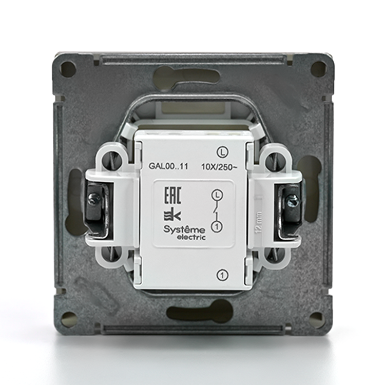 Механизм Systeme Electric серии ArtGallery в цвете шампань выключателя 1-клавишного подходит для сетей 250 В, на ток 10 А.
