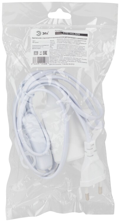 Универсальный светильник ЭРА FITO-Holder E27 с проводом длиной 1,5 м и выключателем подходит для любых ламп с цоколем Е27. В ассортименте ЭРА подвес представлен в разделе фитоосвещения как практичный и эстетичный подвесной светильник для фитоламп.