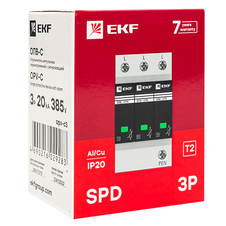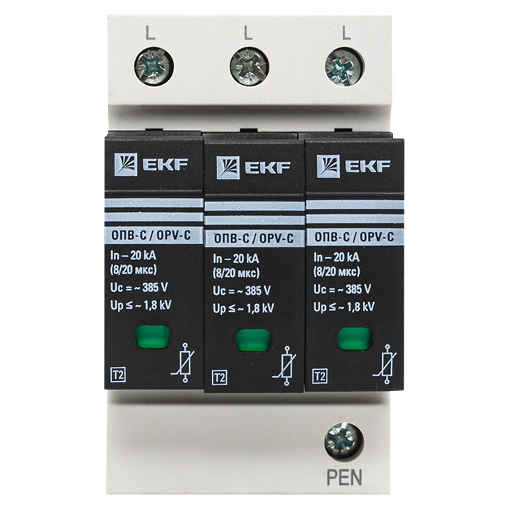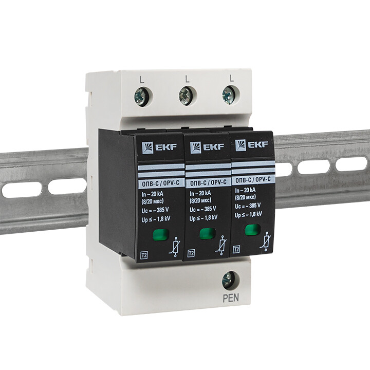 УЗИПы серии ОПВ относятся к классу II и применяются для защиты токораспределительной сети объекта от коммутационных помех или как вторая ступень защиты при ударе молнии. Тип "С" характеризуется номинальным разрядным током 20кА, максимальным разрядным током 40кА с формой волны 8/20 мкс.